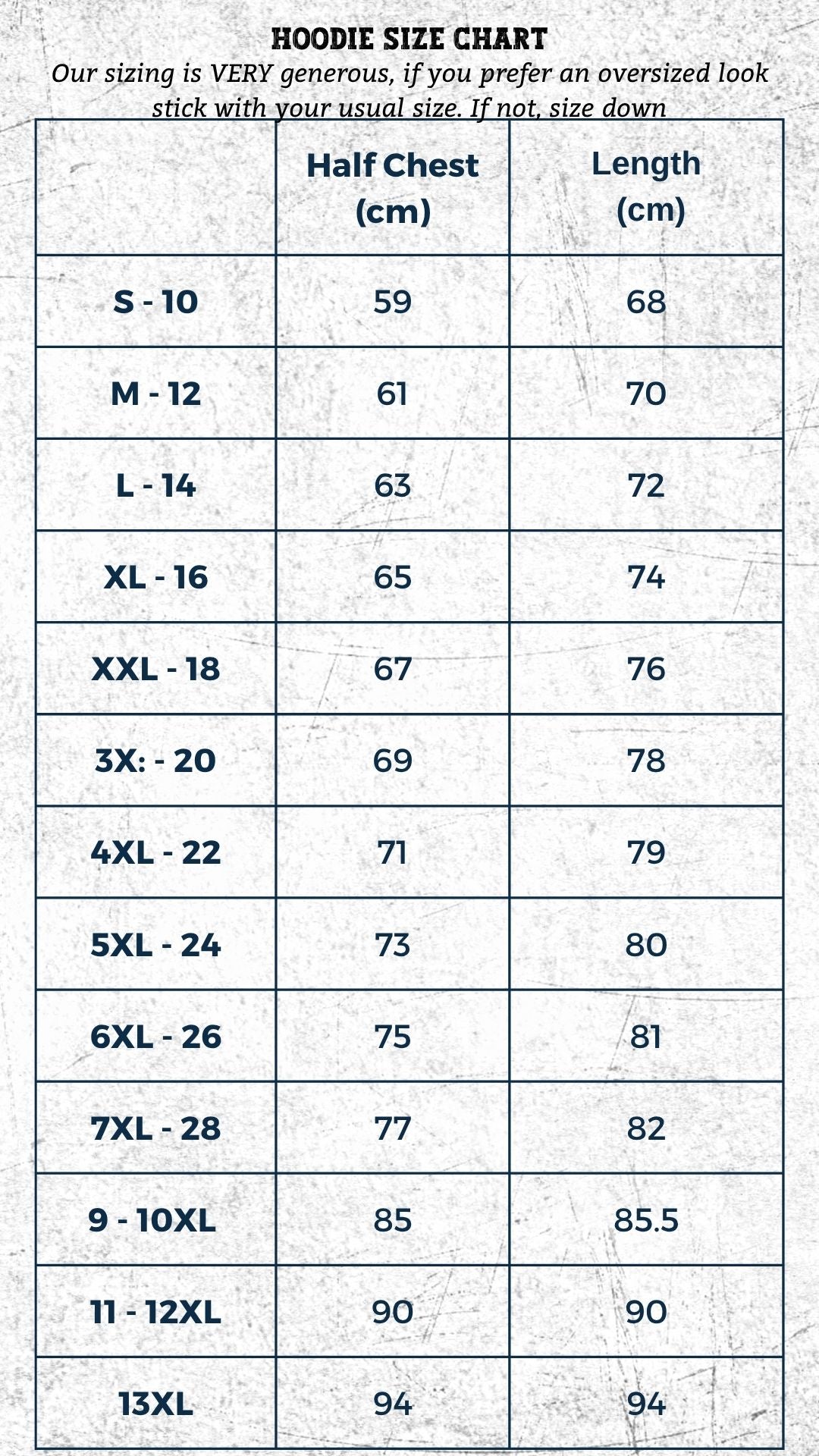 Always turn the Hoodie inside out before washing to shield the print from friction and use cold water with a mild detergent to prevent fading or damage. Skip harsh chemicals and fabric softeners, and opt for a gentle cycle. Do not put our hoodies in the dryer (unless you are like us and honestly have no time for shit to dry, if you decide to go against our advice ensure that it is turned inside out and not to hot)