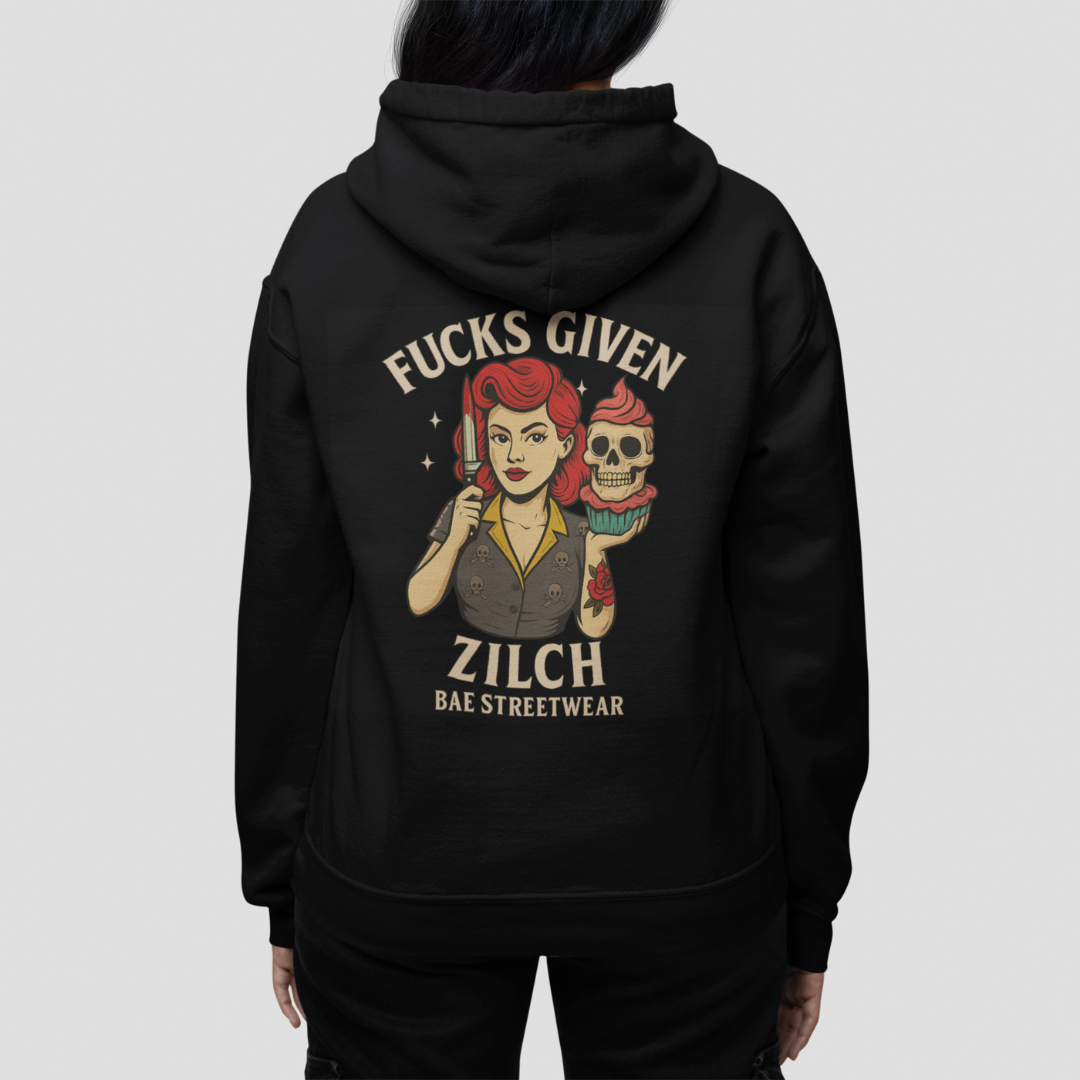 Fucks Given Zilch oversized Black Hoodie